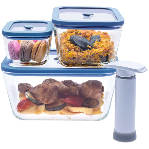Ételtároló doboz szett - ételtároló anyaga üveg, téglalap alakú, tömítéses, vákuum, egymásra rakható és BPA-mentes, ráhelyezhető fedél, fedél anyaga üveg, alkalmas mikrohullámú sütőbe, mosogatógépbe, fagyasztóba, sütőbe és hűtőbe, 4 ételtároló A jól kihasználható STATUS Viva 131202 4 darabos vákuumos üvegedény készlet, kék termék legfontosabb jellemzői A fantasztikus STATUS vákuum dobozok jó szolgálatot tesznek, ha élelmiszert szeretnél tár