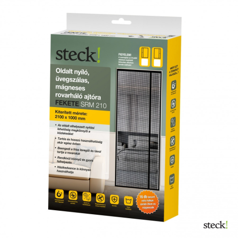 1 kép Steck Jobb oldalt nyíló üvegszálas mágneses rovarháló ajtóra, fekete, 2100x1000mm