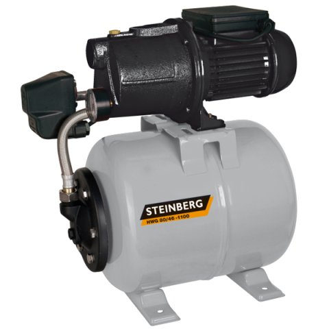Robusztus, önfelszívó JET- rendszerű magas minőségű öntény szivattyúházzal rendelkező házi vízmű 22 l.acél tartállyal; gondozásmentes kondenzátor motorral túlmelegedés elleni védelemmel, ideális önműködő háztartási vízellátáshoz ipari vízből és ciszternákból, valamint automatikus öntözéshez és esővíz felhasználáshoz. Olasz EPDM membrán és tömítés; NORYL- hidraulika; nyomáskapcsoló; integrált manométer; 3 esőztetővel