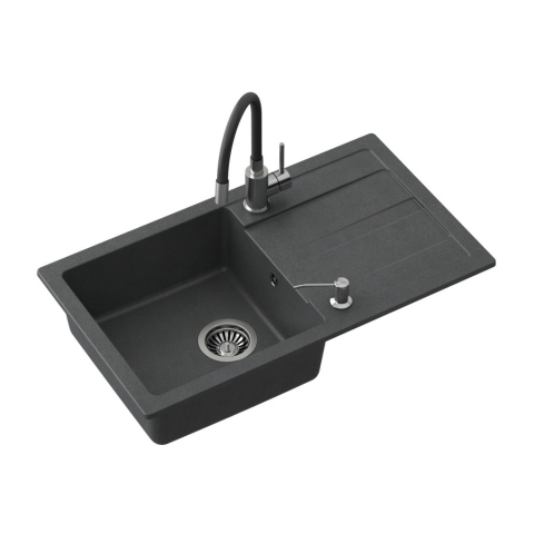 1 kép    Steiner READY- MAX fekete gránit mosogató-CSAPTELEP rugalmas kifolyóval + acél LEFOLYÓ + ADAGOLÓ+SZIFON