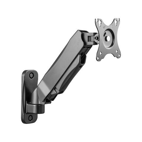 Single monitortartó•Gázdugattyú a terhelés kiegyenlítésére•Min. képernyő átmérő: 13"•Max. képernyő átmérő: 32"•Dőlés: +90°/-45°•Elfordítás: +/-90°•Forgatás: +/-180°•A TV tájolása: landscape/portré•Rögzítés: falra szereléshez•Üzemi terhelés: 2 – 9 kg•VESA 75x75•VESA 100x100•Szín: Fekete•Anyag: Acél / Alumínium•"Biztosíték" kiiktatás ellen
