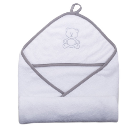 1 kép Stella fürdőlepedő hímzett 110x110 fehér-szürke maci