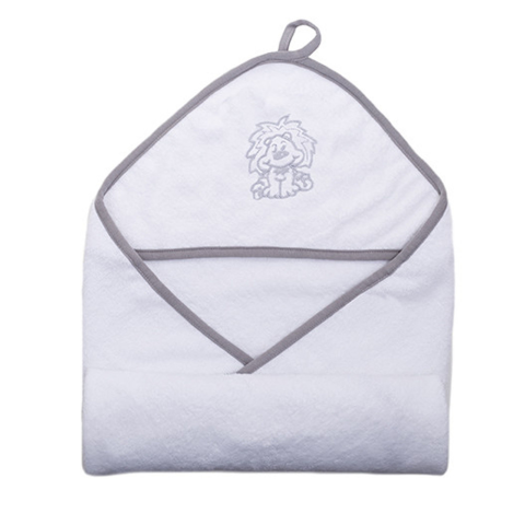 1 kép Stella fürdőlepedő hímzett 110x110 fehér-szürke oroszlán