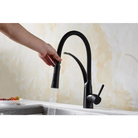 IKA BLACK PURE mosogató csaptelep A TERMÉK JELLEMZŐI Anyag: porfestett sárgaréz Csap: 360 ° -ban elforgatható Magassága: 43 cm Kiömlési tartomány: 20 cm + 30 cm levehető tömlő Fej: kerámia Kettős vízsugarú kézi szabályozás 2 év garancia