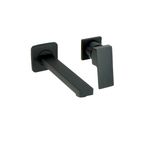 Fekete falra szerelhető rejtett mosdócsaptelep Süllyesztett, egykaros mosdócsaptelep rögzített kifolyóval és 35 mm-es kerámia cserélhető fejjel . A csaptelep sárgarézből készült . A hosszú, falra szerelhető kifolyó profilozott hegyével illeszkedik a l