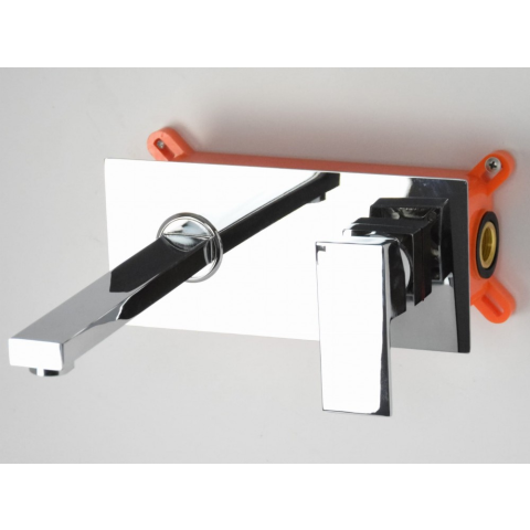 Króm falra szerelhető rejtett mosdócsaptelep Süllyesztett, egykaros mosdócsaptelep rögzített kifolyóval és 35 mm-es kerámia cserélhető fejjel . A csaptelep sárgarézből készült . A hosszú, falra szerelhető kifolyó profilozott hegyével illeszkedik a leg