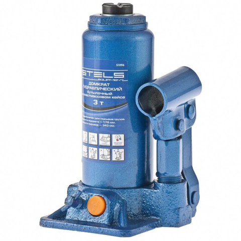 A STELS hidraulikus palack emelő személygépkocsik, terepjárók és kisteherautók szervizelésére szolgál, de nélkülözhetetlen eszköz lesz az építési és javítási munkák során is.Az aljzat emelési kapacitása 3 tonna. A minimális felvételi magasság 17,8 cm, a m