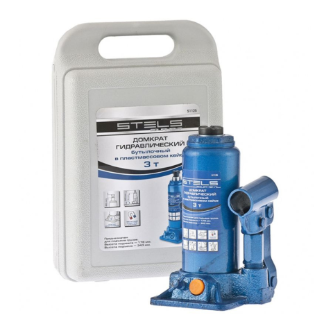 A STELS hidraulikus palack emelő személygépkocsik, terepjárók és kisteherautók szervizelésére szolgál, de nélkülözhetetlen eszköz lesz az építési és javítási munkák során is. Az aljzat emelési kapacitása 3 tonna. A minimális felvételi magasság 17,8 cm, a