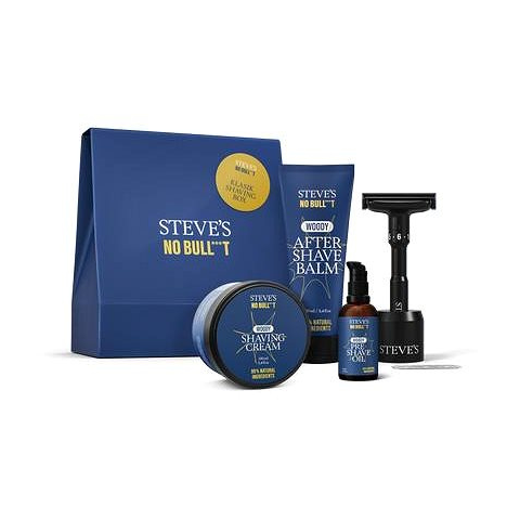 Férfi kozmetikai szett - Tartalmaz Pre-shave Oil 50 ml-t, Shaving Creme 100 ml-t, After Shave Balm 100 ml-t, Up&Down Razor-t + pengéket Add meg szakálladnak a megérdemelt törődést. A STEVE'S Steve's borotválkozós ultrabox Classic mindent tartalmaz, amire csak szükséged lehet - borotválkozás előtti olaj, borotvahab, borotválkozás utáni