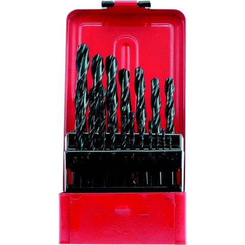 Fúrószár készlet - fém, műanyag és öntöttvas, kúp, hengerszár befogatás, 19 darabos csomag A praktikus STHOR TO-22190 fémfúró készlet gyorsacélból készült, fekete bevonattal, acél fúrásához alkalmas. A fúrók hengeres markolattal rendelkeznek és standard befogásra tervezettek. A magas nyomás