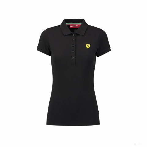 Csinos megjelenésű Ferrari női galléros póló egyenesen a 2018-as kollekcióból!Ez a kalsszikus galléros nyakú női póló nem hiányozhat egy Ferrari rajongó hölgy repertoárjából. A szolid megjelenésű póló mellkasát egy pici Scudetto pajzs díszíti, míg a hátu