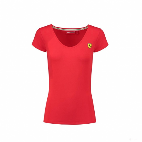 Klasszikus v-nyakú női Ferrari póló egyenesen a 2018-as kollekcióból!Ha te is Ferrari rajongó hölgy vagy és pólót keresel magadnak, amelyet akár a hétköznapokon is kényelmesen viselhetsz, akkor jó hírem van... megtaláltad!A piros póló, könnyű légátereszt