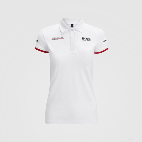 Porsche hivatalos terméke a 2022-es szezonból. Galléros, fehér színű, felnőtt női póló. Elején a Porsche és Hugo Boss logóval. Karjain szponzor logók. Hátulján Porsche felirattal, és Hugo Boss emblémával. Részletek: Anyag: 100% Pamut Szín: Fehér Méret: [