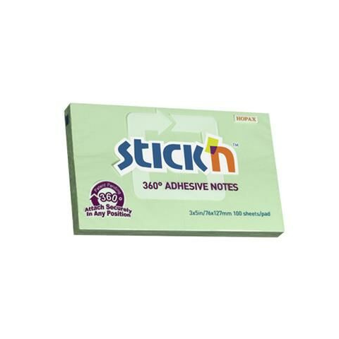 A Öntapadó jegyzettömb, 76x127 mm, 100 lap, STICK N, zöld (SN21556) Egyedi szabadalmaztatott technológiával készült STICK'N öntapadó jegyzettömb -négyzet alakú ragasztócsík -jegyzeteit bármilyen irányban írhatja -erősebb tapadás a különböző felületek