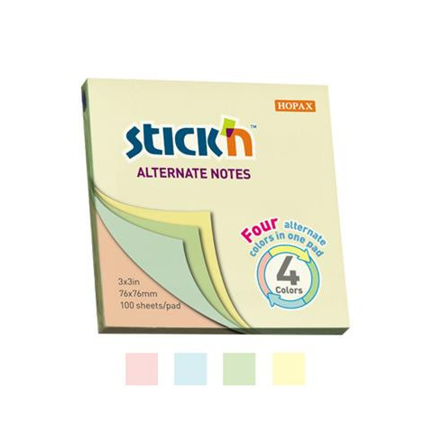 Öntapadó jegyzettömb, 76x76 mm, 100 lap, STICK N, pasztell színek - SN21821 - Közepes méretű öntapadó jegyzettömbök - STICK'N öntapadó jegyzettömb -4 féle pasztell szín/tömb