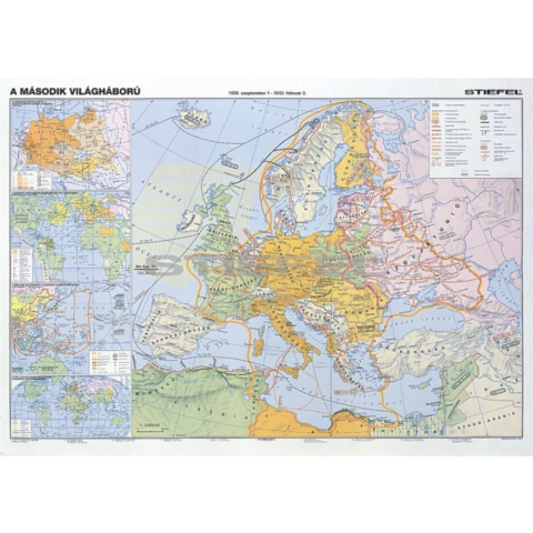 A II. Világháború - részletes történelmi térkép (kétoldalas) Ez a lenyűgöző, kétoldalas térkép átfogó képet nyújt a II. Világháborúról. Részletesen feltünteti a frontokat, a szövetséges és tengelyhatalmak pozícióit, a kapitulációkat, a határváltozáso...