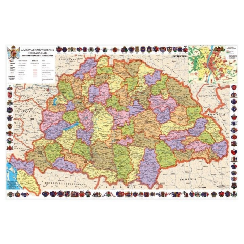 Régi Magyarország térkép, Régi Magyarország falitérkép, Magyarország falikép. Szent-Korona orsazágai térkép. A Magyar Szent Korona Országai keretes falitérkép 1910. A Magyar Szent Korona országai térképe jelenlegi Magyarország határral. Falra szerelhető