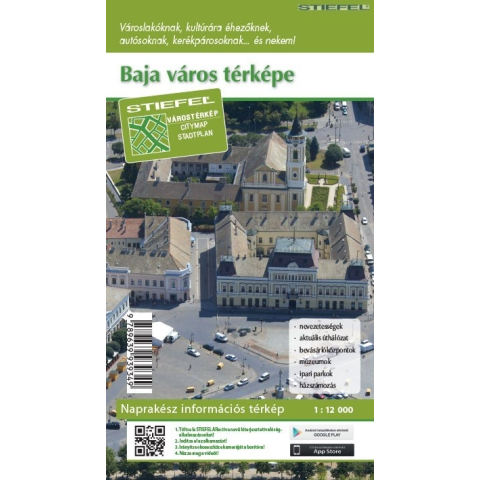 Baja térképünk olyan aktuális várostérkép, mely már a közelmúltbeli beruházásokat is ábrázolja. A fontosabb középületeket kiemeltük, az egészségügyi, oktatási intézményeket piktogrammal jelöltük, hogy a térkép használóit segítsük a minél pontosabb tájé