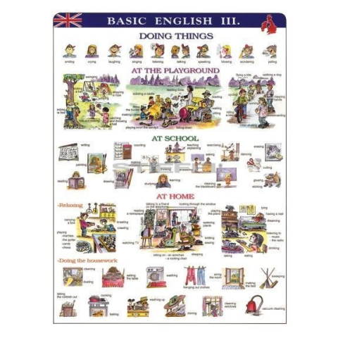Steinberger Basic English III. DUO Oktatótabló: Jelenidei Igék és Mindennapi Tevékenységek 📚 Ez a kétoldalas oktatótabló tökéletes eszköz az angol jelen idejű igeidők elsajátításához és a mindennapi tevékenységek angol nyelvű megnevezésének megtanulá...