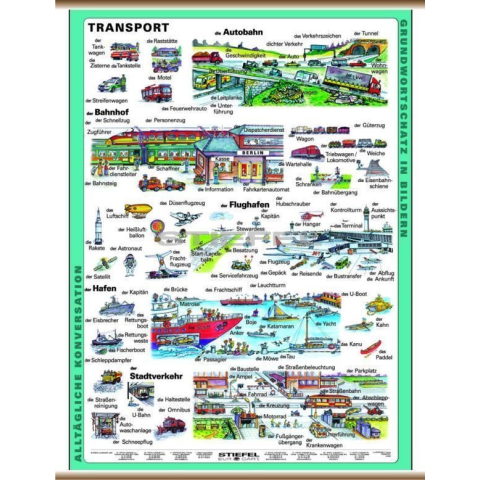 Német nyelvtanulás Játékosan: Közlekedési Oktatótabló (120x160 cm) 🚗✈️🚢 Ez a nagyméretű (120x160 cm), laminált és lécezett oktatótabló ideális eszköz a német nyelv játékos és könnyed elsajátításához. A közlekedéssel kapcsolatos szavak és kifejezések...