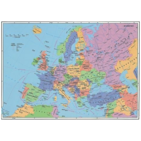 Közigazgatási Európa falitérkép, poszter Falikép, falitérkép, falra szerelhető térkép.