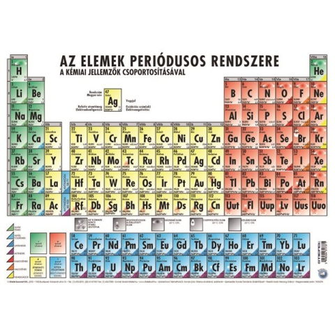 - Az egyes elemek fizikai illetve kémiai jellemzőit a tabló két oldalán ábrázoltuk.