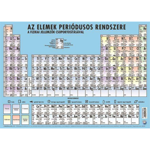Könyökalátét, kétoldalas, A3, STIEFEL Az elemek periódusos rendszere Az egyes elemek fizikai illetve kémiai jellemzőit a tabló két oldalán ábrázoltuk. Az előoldalon a kémiai tulajdonságok kaptak hangsúlyt az egyes mezők adatai között, míg a hátoldalon