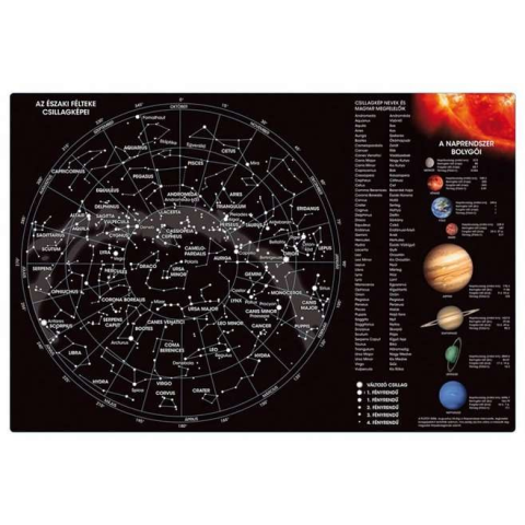 Könyökalátét, kétoldalas, STIEFEL Csillagok/Csillagképek és bolygók A kemény fóliával bevont alátétek azon kívül, hogy esztétikusak és valódi térképként vagy oktatási segédletként használhatók, egy sor további előnnyel bírnak: - védik az asztalt a karc