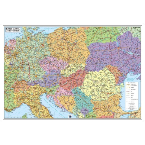 Kétoldalas Fóliás Közép-Európa térkép, Világtérkép Közép-Európa autótérképe falitérkép, könyöklő Stiefel A Föld országai angol nyelvű alátét. Melléktérképek: a Föld időzónái és a sarkvidékek. Nyelv: nemzetközi Úthálózat útszámozással és km távolságga