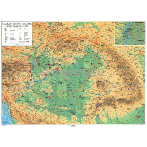 Falitérkép, fóliázott-lécezett kivitelben. A magyar történeti emlékeket bemutató térképünk áttekintést nyújt a Kárpát-medencében ma még megtalálható emlékhelyekről. A magyar történeti emlékeket bemutató térképünk átlépve hazánk jelenlegi határait,...
