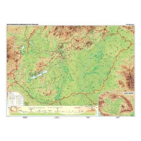 Fóliás domborzati Magyarország térkép Kétoldalas falitérkép, a hátoldalon Magyarország borvidékei és történelmi emlékhelyei térkép