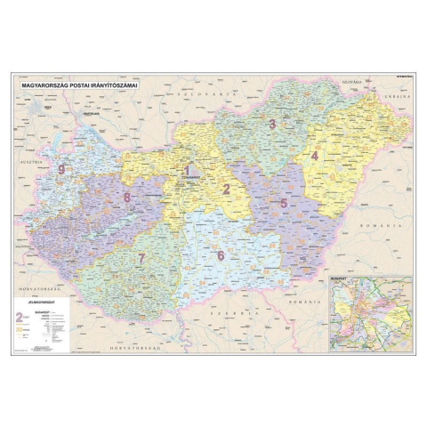 Magyarország irányítószámos falitérkép. Magyarország irányítószámos térképe. Magyarország falikép. Magyarország térkép falra, Magyarország közigazgatási térképe. Fóliás Magyarország falitérkép fémléccel. Írható, mosható. Praktikus, nagyméretű falitérké