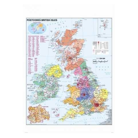1 kép Stiefel Nagy-Britannia postai irányítószámos fémléces falitérkép Stiefel 100x140 cm
