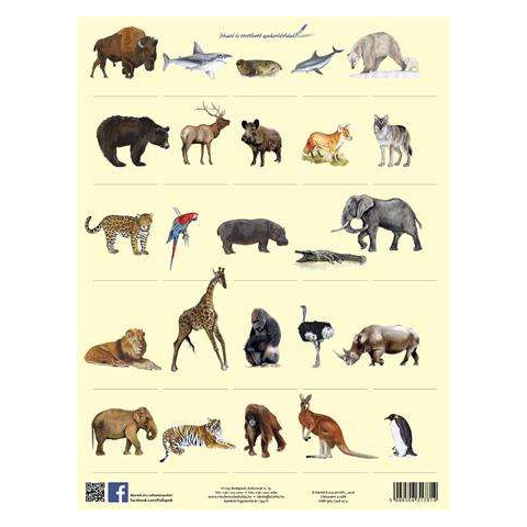 Tanulói munkalap, A4, STIEFEL Vadon élő állatok 2 oldalas, lefűzhető, írható-letörölhető Jópofa illusztrációkkal elkészült legújabb tanulói lapunk a vadon élő állatok. Gyakorolj! A hátoldal felirat nélküli, ismerd fel az állatokat és írd rá nevüket! Ha