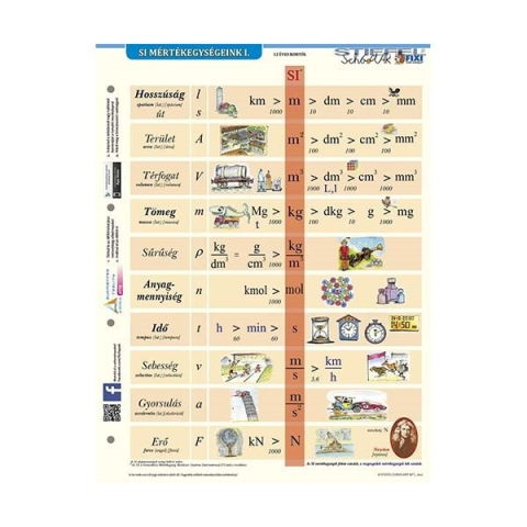 Egér és vízimalom, macska és konnektor, elefánt és fogkrém, párduc és célszalag. Ezeket a furcsán hangzó kapcsolatokat, de valójában igen mindennapi fizikai fogalmakat, jelenségeket illusztráló, két tagból álló sorozat az SI és a megengedett mértékegységek világába kalauzol. A hátoldalon gyakorló-oldal egészíti ki az ötletes és humoros rajzokkal, fizikusportrékkal összeállított táblázatot, amely a mérték-egységek elnevezésének idegen nyelvű eredetét