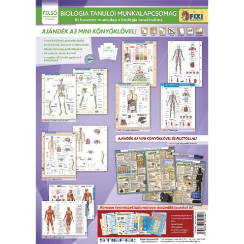 Tanulói munkalap csomag, 5 munkalap, 1 alátét, filc, STIEFEL Biológia A Fixi tanulói munkalapok a magyar oktatásban széleskörűen használt falitérképek és oktatótablók kicsinyített másai, nemcsak az órai munkát, hanem az otthoni gyakorlást is megkönnyít