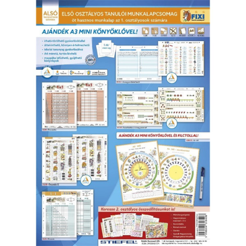 Tanulói munkalap csomag, 5 munkalap, 1 alátét, filc, STIEFEL I. osztály A Fixi tanulói munkalapok a magyar oktatásban széleskörűen használt falitérképek és oktatótablók kicsinyített másai, nemcsak az órai munkát, hanem az otthoni gyakorlást is megkönny