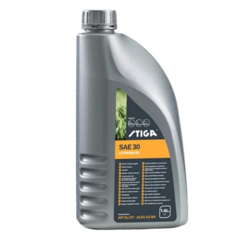 A palack 1,4 liter olajat tartalmaz. Ezt az olajat kifejezetten a STIGA gépek motorjaihoz terv