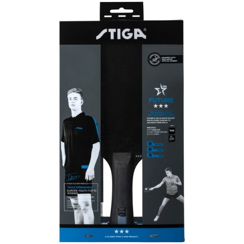 Pingpongütő - háromcsillagos, konkáv (FL) fogantyú, tömege 170 g The STIGA Future 3-star bat is a three-star bat designed primarily for advanced players who prefer an attacking style of play. It is made of five layers of quality wood and thanks to the concave handl