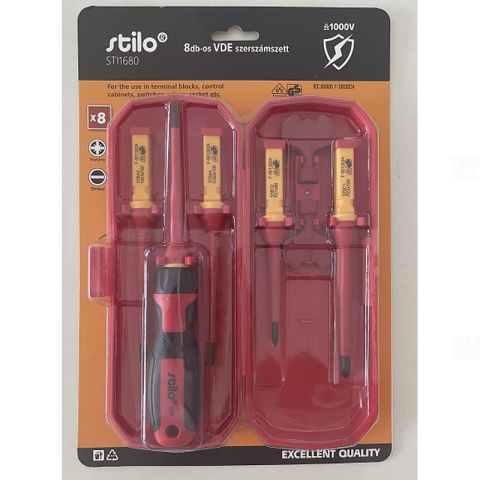 1 kép Stilo Csavarhúzó készlet 8db-os szigetelt, cserélhető betéttel, lapos és PZ fejekkel