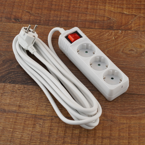 Hálózati elosztó 3db aljzat 5fm vezetékkel, kapcsolóval (H05VV-F 3x1,5 mm2) fehér Stilo STI768