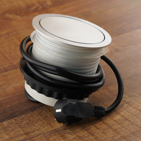 Hálózati elosztó rejtett, asztalba süllyeszthető, kerek hengeres 3db aljzat 1,5fm 3G1,5mm2 vezetékkel +2db USB aljzat(2,4A 5V) STI1625 Stilo