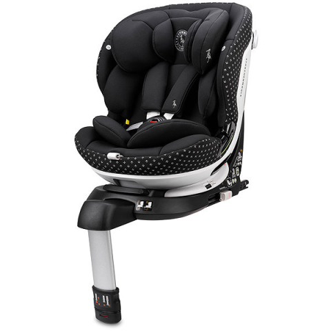 Gyerekülés - olyan gyerekek számára, akiknek magassága 40-150 cm, rögzítés ISOFIX rendszerrel és biztonsági öv segítségével, háttámla dőlésszög, biztonsági öv és fejtámla beállítási lehetőséggel, i-Size (R129) és ECE R129/03 tanúsítvány, 5-pontos biztonsági öv biztosítja a gyermek biztonságát, 360°-ban elfordítható, menetiránynak megfelelően és menetiránnyal szemben való ülés lehetősége, dönthető kialakítás és újszülött betét, mérete 59-