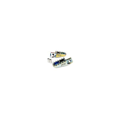 Aluminum footrests Derbi neochromeMore style and better grip for your 50cc motorbike: the STR8 foot pegs are made from CNC-machined, anodized aluminum. They look sharp and deliver solid support. Cleanly laser-etched STR8 logo and aggressive teeth in motocross style for extra grip.Plug and play fit for Derbi Senda X-Treme, DRD, Gilera RCR, SMT, and Aprilia SX / RX with perimeter frame. The sharp motocross-style teeth provide excellent grip and noticeably better hold than the stock pegs—ideal fo