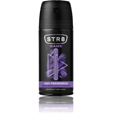 Dezodor - férfi, spray kivitel, zsíros, normál, kombinált, száraz és érett bőrre ajánlott, frissítő, hosszan tartó hatású, 150 ml-es kiszerelésben Semmi sem fontosabb, mint egész nap frissnek érezni magad és kellemesen illatozni. A STR8 GAME Deodorant Body Spray akár 48 órán át tartó friss érzést biztosít, és friss, nyugtató és érzéki fás jegyei
