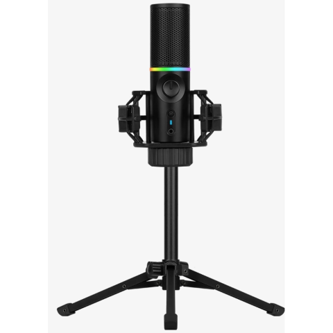 Kondenzátor mikrofon tripod állvánnyal és RGB világítással (manuálisan vezérelhető).