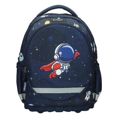 Hátizsák STREET ergonómikus Fly High Ergonomikusan kialakított háttámla. - Rendkívül könnyű. - Többrétegű kemény alsó. - Széles és kemény vállpántok. - Fényvisszaverő részek a pántokon és a táska elején. - Alkalmas az általános iskola első három osztál