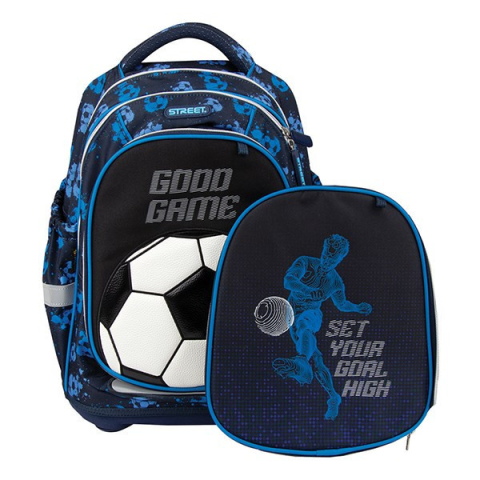Hátizsák STREET ergonómikus Good game Ergonomikusan kialakított háttámla. - Rendkívül könnyű. - Többrétegű kemény alsó. - Széles és kemény vállpántok. - Fényvisszaverő részek a pántokon és a táska elején. - Alkalmas az általános iskola első három osztá