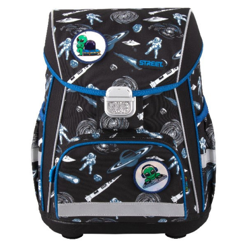 Iskolatáska STREET anatómiai ABC Alien - Kényelmesen kialakított háttámla. - Rendkívül könnyű. - Többrétegű kemény alsó. - Széles és kemény vállpántok. - Fényvisszaverő részek a pántokon és a táska elején. - Alkalmas az általános iskola első három