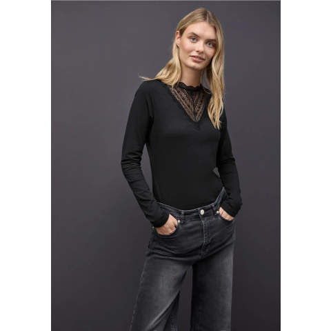1 kép STREET ONE női pulóver - Csipkés nyakú, fekete vékony anyagú 324326-10001
